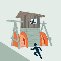 Bist zu dieser Challenge hast du schon eine Menge an koordinativen Fähigkeiten bewiesen – du bist gelaufen, gesprungen & geklettert. Beim Kriechparadies zwingen wir dich jedoch auf den Boden und es heißt für dich mit voller Motivation eine Strecke lang auf erdigem Sand zu kriechen.