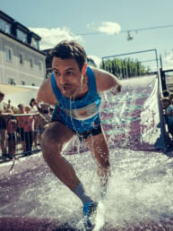 Abkühlung gefällig? – dann bist du beim Alpenbad genau richtig! Bevor es weiter zum Wetzlarerplatz und dann schon bald ins Ziel geht, wartet ein Becken gefüllt mit Wasser auf dich dass dich nochmal dementsprechend säubert.